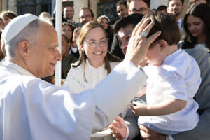 O Papa Leão XIV protagonizou um momento que tem chamado atenção nas redes sociais com um casal cearense. O casal Melchior e Camila Quental realizaram a entrega de um chapéu típico do nordeste ao Pontífice em Roma. Eles estavam acompanhados do filho Joaquim, que tem um ano. A criança, foi abençoada por Leão XIV. Melchior é natural da cidade de Missão Velha, na Região do Cariri.