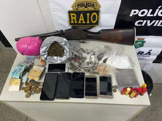 As diligências culminaram em uma residência onde os agentes encontraram drogas e armamento. No local, foram apreendidos 630 gramas de entorpecentes, uma espingarda calibre 12, munições, seis celulares e uma balança de precisão. Os ocupantes da casa tentaram escapar, mas foram capturados.