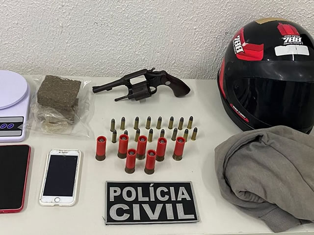 Equipes de policiais civis da Delegacia de Polícia Civil de Barbalha e do Departamento de Polícia Judiciária do Interior Sul (DPJI-Sul) capturaram a dupla no bairro Antônio Vieira. Também foram apreendidos um revólver calibre 38, 16 munições calibre 38, sete munições calibre 12, 235 gramas de maconha, duas balanças de precisão, celulares e uma motocicleta CG 125 Titan Vermelha. O homem, de 18 anos, já responde pelo crime de tráfico de drogas e é investigado como um dos suspeitos de um homicídio registrado no município de Barbalha, em maio deste ano, e em outros homicídios ocorridos na região.