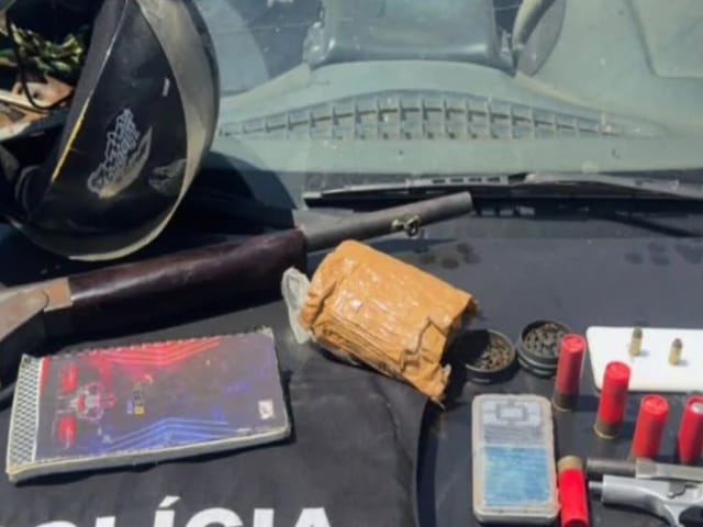 Durante a ofensiva, os policiais apreenderam uma pistola calibre 7.65, um revólver calibre 32, uma espingarda calibre 12 e uma porção de maconha. O material e os suspeitos foram encaminhados à delegacia local para os devidos procedimentos.